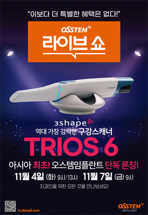 오스템 라이브쇼가 이달 4일과 7일 3shape社 최신작 ‘TRIOS 6’의 아시아 최초 론칭 방송을 진행한다.