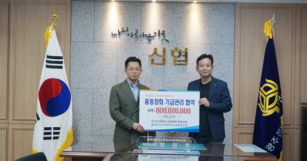 조선대학교 치과대학 총동창회(회장 최치원)와 광주전남 치과의사신용협동조합(부이사장 최원호)은 특별회계 8억원 돌파를 기념해 ‘총동창회 기금관리 협약’을 체결했다.