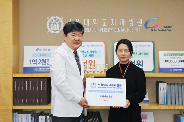 이용무 원장은 “발전후원회 서포터즈 1호로서 의미 있는 나눔을 실천해준 것에 감사하다. 이번 기부는 취약계층 장애인들의 치료 접근성을 높이는 데 큰 힘이 될 것”이라며 “서울대치과병원은 이러한 따뜻한 뜻을 이어받아 누구나 차별 없이 필요한 치료를 받을 수 있는 환경을 만들기 위해 공공의료기관으로서 역할을 더욱 강화하겠다”고 밝혔다.